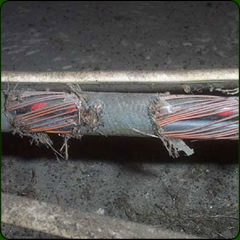 Damage also comes from squirrel chewing. The squirrel is a rodent and their front teeth always grow causing the squirrel to constantly chew to keep teeth sharp and at a manageable level. In nature squirrels chew tree bark, twigs and other natural hard items. In your attic, squirrels chew wiring, support beams, roof braces and electrical fixtures. They can also destroy your insulation by trampling it pushing it down, which reduces your R-factor. Their urine and fecal matter will also collect in your attic insulation. They also cause damage in drywall by digging holes. This is usually the mother squirrel exercising her back leg muscles to prepare for birth. If you hear chewing or scratching in your attic don’t hesitate to call a wildlife control professional immediately. The Squirrel should not be a welcome guest in your home.
